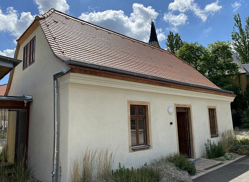 Das kleine um 1830 errichtete Tagelöhnerhaus in Wellerlehmbauweise ist eines der wenigen erhaltenen Gebäude des historischen Ortskerns von Lössnig, heute Stadtteil im Leipziger Süden. Es gehört zum Gelände der Freien Waldorfschule Karl-Schubert und war Teil eines alten Rittergutes, dessen Geschichte bis ins Mittelalter zurückreicht. Mit der behutsamen Sanierung des vom Verfall stark bedrohten Kleinodes in den Jahren 2017 bis 2018, hat die Schule als Bauherrin das Gebäude nicht einfach nur gerettet sondern dem Lehmbau auch denkmal- und materialgerecht wieder ein zweites Leben eingehaucht. Auch in seiner Innenausstattung mit Lehmputzwänden und Naturholzeinbauten bietet es den Schülern heute als Schulcafé ein ausgesprochen angenehmes Ambiente.