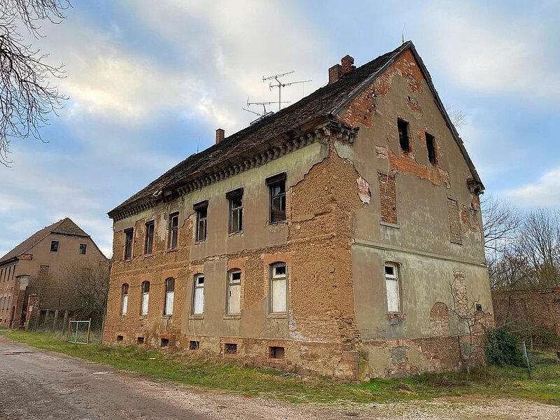Das Lehmhaus des Monats März führt uns in das kleine Dorf Oechlitz im Saalekreis. Hier steht die Ruine eines um 1869 errichteten Bauernhofes.