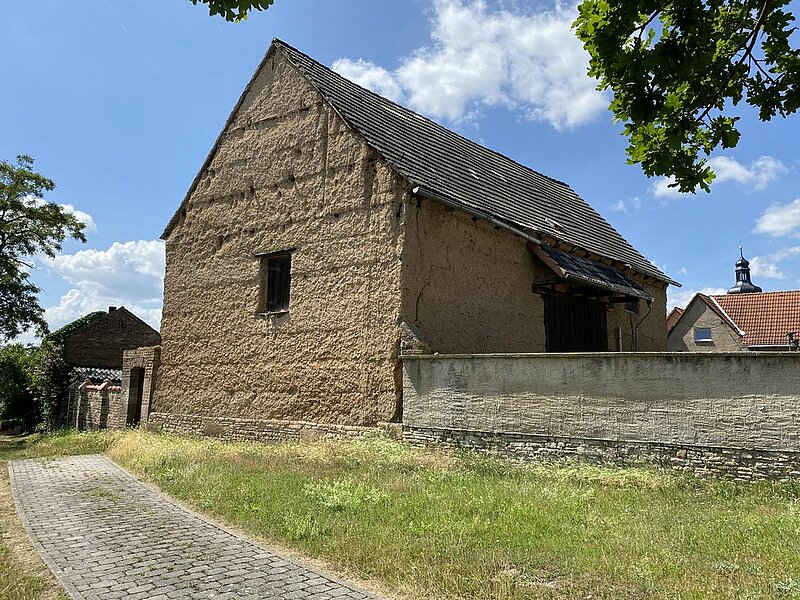 Gebäude aus massivem Lehm prägen den ländlichen Raum Mitteldeutschlands seit Jahrhunderten. Während der Lehmwellerbau die vorherrschende Massivlehmtechnik in der Region war, sind Bauten aus Lehmsteinen - also ungebrannten, luftgetrockneten Lehmformsteinen vergleichsweise selten. Viel häufiger finden sich Lehmsteine in Form von Ausfachungen an Fachwerkkonstruktionen. Im Burgenlandkreis im Süden Sachsen-Anhalts - einer Hochburg des Massivlehmbaus - finden sich dennoch einige Zeugnisse dieser historischen Lehmbauweise.