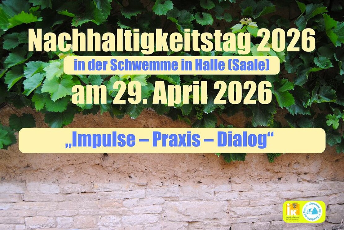 Der Nachhaltigkeitstag in der Schwemme-Brauerei in Halle am 29. April 2026 lädt Ingenieure und Architekten von 14 - 18 Uhr ein, diesen Fragen gemeinsam nachzugehen. Unter dem Leitmotiv „Impulse – Praxis – Dialog“ bietet die Veranstaltung Raum für Inspiration, fachlichen Austausch und konkrete Praxisbeispiele.